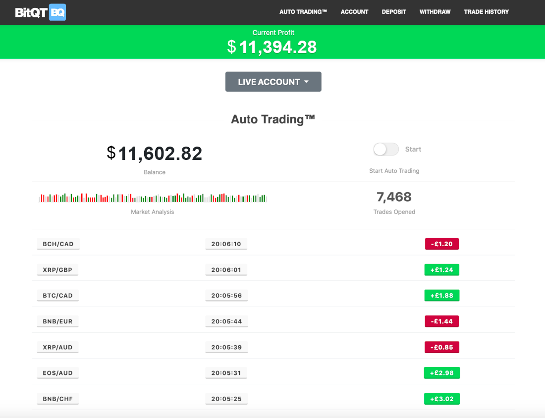 The official website of claims it can generate high profits for any user by executing a unique trading algorithm. This algorithm enables the user to automatically trade Bitcoin and other crypto currencies.